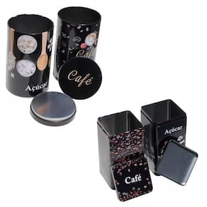 Kit 2 Potes Porta Mantimento Potes Preto de Café e Açúcar Formato: Redonda It Porta Mantimentos em Metal - Para Açúcar e Café