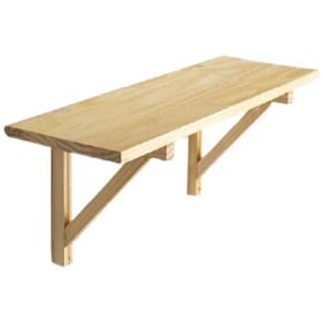60 cm comprimento 20 cm profundidade Espessura média da prateleira: 2cm Acompanha 2 mãos francesas com buchas e parafusos Material: madeira pinus