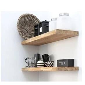 70 cm comprimento 20 cm profundidade Espessura da prateleira: de 1,8 a 2,2 cm Material: madeira pinus Cor do verniz: jacarandá fosco.
