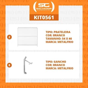 Cor: Branco | Tonalidade: Branco | Material: Aço carbono | Produto: Kit Prateleiras