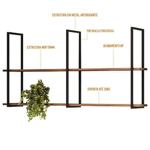 Evidenciando ainda mais o estilo industrial, a Prateleira Design permite combinações multifuncionais sem limites. Suas laterais vazadas permitem um olhar sobre a decoração, e que junto com o formato retilíneo traz um visual incrível sem carregar o ambiente. Ainda é possível criar composições fantásticas com ela, viu? Tanto para a sua praticidade, quanto para valorizar a decoração do produto na sua casa. O estilo industrial permite enriquecer a interna de qualquer espaço, com essa prateleira você consegue utilizar vasos com folhagens que caem e ultrapassam a sua estrutura, vasos e objetos decorativos que podem deixar tudo mais especial. Está esperando o que pra ter a sua?