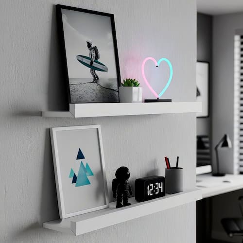 Deixe seu ambiente mais moderno e cheio de personalidade com o Kit 2 Prateleiras Quadro! Com design elegante e acabamento impecável, ela é perfeita para expor quadros, plantas, livros e objetos que contam sua história. Ideal para quem busca estilo e funcionalidade, transforma qualquer parede em um ponto de destaque. Seu visual clean combina com diversos estilos de decoração, do contemporâneo ao industrial, trazendo charme e organização ao espaço. Um toque simples que faz toda a diferença no seu lar ou escritório! Acabamento: Pintura Ambiente Principal: Quarto codigo_ean: 7900288267245 Cor: Branco Cor do Produto: Branco Escala de Brilho: Fosco Itens Inclusos: 2 Prateleiras, Kit Ferragens e Manual de Montagem Linha ou Coleção: Quadro Manual de Montagem e Instalação: https://product-hub-prd.madeiramadeira.com.br/601045701/documents/4fa41071-f8b0-4c7a-9247-c40323bef37532762354823176064327832.pdf Marca: JPF Móveis Material Principal: MDF Necessita Montagem: Não Origem do Produto: Nacional Peso: 2,5 kg Peso Máximo por Prateleira: 9 kg Possui Espelho: Não Possui Quantidade de Prateleiras: 02 Recomendações de Uso, Manutenção e Limpeza: Pano úmido Suporta Até (kg): 9 kg