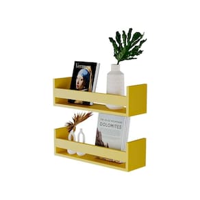 Kit 2 Prateleiras Porta Objetos Amarela 60 x 12cm Suporte Invisivel - Amarelo