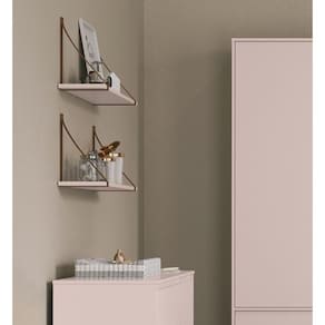 Deixe seu ambiente mais organizado e sofisticado com o Kit 2 Prateleiras Suporte Gold. Produzidas em 100% MDF com acabamento Rose , oferecem praticidade e resistência. O suporte em material sintético de alta qualidade garante firmeza e um design moderno que combina com diversos estilos de decoração.
