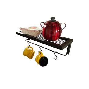 Kit 2 prateleiras de tela decorativas cozinha porta toalhas e utensílios metal preto Conjunto com 2 prateleiras pretasA prateleira bar é versátil, ideal para a sua cozinha, é uma peça para quem quer apostar em organização e beleza. A estrutura em aço carbono é leve e resistente e o acabamento em pintura epóxi que garante ela ser protegida contra a umidade, riscos e demais condições. Ainda mais, a nossa bar conta com suporte com de panos e ganchinhos para suas xícaras que te permite deixar o ambiente com a sua cara. Uma maneira simples de ter seus utensílios sempre à mão e dar um toque industrial os cômodos mais importantes da sua casa Para limpar a prateleira utilize pano seco ou espanador, não utilize produtos abrasivos. Especificações do produto: Feita em aço carbono Categoria: residencial Capacidade: 5kg Dimensões: 14 x 40 x 11cm cxlxa Pintura: epóxi eletrostática - pode ser utilizada no ambiente externo. Cor: preta -contém kit ferragem -fácil fixação Acompanha kit com 6 ganchinhos Marca: D'Elfos Decorações