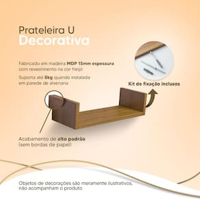 Kit 2 Prateleiras U 70 x 15cm Freijó Suporte Invisível. A prateleira Crie Fácil foi desenvolvida pensando em deixar o seu ambiente mais organizado e criativo de forma prática e simples.