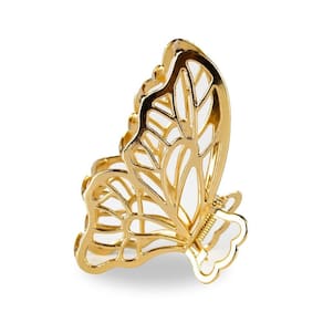 Ideal para todos os tipos de cabelo, uma tendencia que nunca sai de moda, pode ser combinado com diversos looks, desde os mais simples aos mais elegantes, utilizado para prender todo ou cabelo, ou apenas metade criando penteados versáteis para o dia a dia Feito com metal dourado resistente e forte, sua cor dourada não descasca. Prende o cabelo de forma segura, sem danificar o couro cabeludo ou os fios. A presilha de formato borboleta, trás delicadeza e elegância. As asas da borboleta são esculpidas com traços finos que formam várias partes de sua asa, criando um desenho incrível, já a no formato de coração esculpido por corretaria é um clássico simbolizando romantismo e delicadeza. O coração é suavemente arredondado e bem definido, com bordas similares a correntes de elos redondos.