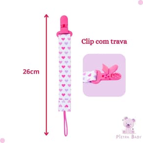 Com o clipe fácil de prender na roupinha do bebê, você nunca mais terá que se preocupar com a chupeta caindo no chão. Mantenha a chupeta sempre limpa e acessível ao seu bebê, evitando quedas, perdas ou contaminações indesejadas.