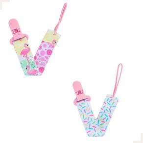 Kit 2 Prendedores de Chupeta Pietra Baby Cor: Confetti e Flamingo Apresentamos o Prendedor de Chupetas Pietra Baby, um acessório essencial para cuidar do bem-estar do seu bebê com estilo e praticidade. Com design lindo e excelente acabamento, este prendedor é fabricado com carinho, pensado especialmente para proporcionar conforto e segurança ao seu pequeno.