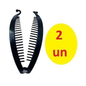 Contém: 2 unidades Presilhas De Cabelo Preta Estilo Banana com Pente 14cm