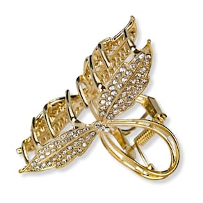 Nossa presilha de cabelos dourada em formato de duas folhas, como um ramo ou galho, feita de aço inoxidável possui strass colados por ela, um design delicado que entrega muita personalidade! Seu design é único, com alças finas e folhas marcantes cheias de brilho, confeccionadas para trazer conforto aos cabelos e ao mesmo tempo sofisticação nas formas de prende-lo. A presilha combina durabilidade com estilo, sendo perfeita para adicionar um charme refinado a penteados soltos ou semi-presos. Ideal para todos os tipos de cabelos, sendo um acessório versátil para o dia a dia e também para penteados mais elaborados. Projetada com material resistente e forte, o que evita amassados e danos a peça, ainda assim entrega segurança para todos os tipos de cabelos, sem danifica-los ao serem presos ou semi presos.