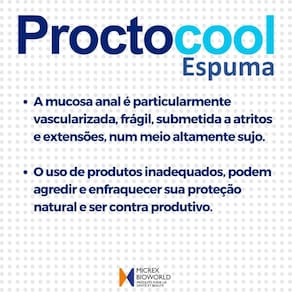 Kit 2 proctocool espuma higiene com/sem enxágue. Hemorróidas,pós cirurgia, relações íntimas, banho de assento 100ml Kit 2 proctocool 100 ml O que é proctocool Anvisa 25351.520048/2020-32 - proctocool é uma espuma especial para a limpeza e o cuidado da região que tem a praticidade de poder ser com ou sem enxágue. - o uso de produtos de higiene inadequados, especialmente em caso de problemas na mucosa podem agredir e enfraquecer sua proteção natural e ser contra produtivo. - proctocool é uma espuma lavante que não contêm sabão, mas syndet um outro tipo químico de substância lavante não agressiva para a mucosa. - proctocool conta com ácidos hialurônicos, e 6 extratos de planta que auxilia na melhora de hemorroidas e fissuras anais, além de possuir ação suavizante. - na forma de espuma, proctocool é de fácil aplicação sem desperdício com ou sem enxague. Proctocool pode também ser diluído em banho de assento. Indicações - proctocool é indicado para higienização completa e segura da região . Em casos de prurido , doenças hemorroidárias, pôs cirurgia, fissuras anais... Essa higienização alivia o desconforto, permite uma cicatrização normal e deixa uma película protetora de ácido hialurônico na região tratada. - proctocool graças ao acido hialurônico ajuda na dissolução de coágulos hemorroidas pode ser em banho de assento quente - proctocool é recomendado também para higienização antes e depois de relações anais. Usando antes, além de proporcionar a higiene, ajuda na hidratação e lubrificação. - proctocool deixa uma duradora sensação de limpeza e alívio. Vantagens - higiene profunda, mas delicada, sem agressão, - não contém conservante, corante, perfume, álcool. - pode ser sem enxágue, extremante útil em ambientes onde não há facilidades para o uso de água, como em escritório ou em viagens. Modo de uso: - aplicar a espuma proctocool na mucosa umedecida e massagear suavemente; depois enxaguar bem. Repetir pelo menos uma vez. Na última vez, enxaguar levemente. - pode ser sem enxágue: - proctocool pode ser diluído em água quente para banho de assento.