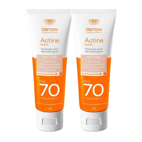 Protetor Solar Actine Colors Pele Clara FPS 70 Toque Seco 40g Actine, a linha expert em pele oleosa, mais prescrita pelos dermatologistas, possui uma linha completa de produtos desenvolvidos especialmente para peles brasileiras. Actine protetor solar FPS 70 colors possui um complexo de filtros que oferece amplo espectro de proteção solar contra os raios UVA/UVB, com pigmentos que ajudam a proteger contra a luz visível e minimizar o dano causado pelos raios infravermelhos devido à ação antioxidante do produto, evitando o fotoenvelhecimento e prevenindo manchas solares. Além disso, possui um complexo de ativos [vitamina E + sílica de ultra absorção], ajudando a prevenir a acne com um potente controle de oleosidade de até 12 horas. Actine protetor solar FPS 70 colors possui uma textura fluida de rápida absorção, promovendo uniformização do tom da pele com uma cobertura duradoura. Ideal para peles oleosas a acneicas. Disponível em 3 tons: Pele clara, morena e morena mais. Fórmula segura, livre de parabenos e perfume. Hipoalergênico. Não comedogênico. Não causa acne. Não testado em animais. Para crianças menores de 6 meses, consultar um médico. Este produto não oferece nenhuma proteção contra insolação. Evite exposição prolongada das crianças ao sol. Este produto foi formulado de maneira a minimizar o possível surgimento de alergias.