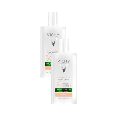 Vichy Capital Soleil UV-Clear Protetor Solar Facial Aqua-Fluido Antioleosidade com Cor 2.0 FPS 60 O protetor solar facial Capital Soleil UV-Clear FPS60 oferece proteção avançada contra os raios UVA, UVA Longo e UVB, graças à tecnologia anti-UV patenteada Netlock DRY™. Sua textura aqua-fluida possui absorção rápida e acabamento invisível, sem deixar resíduos brancos na pele. Além disso, UV Clear também garante controle de oleosidade por até 12h, e eficácia comprovada cientificamente na redução de produção da oleosidade, com apenas 8 semanas de uso. Com fórmula enriquecida com Niacinamida e Ácido Salicílico, além de proteger dos danos causados pelos raios UVA, UVA LONGO e UVB, também auxilia no combate diário às imperfeições causadas pela acne. Protetor solar facial de uso diário com ação antioleosidade e textura aqua-fluida.