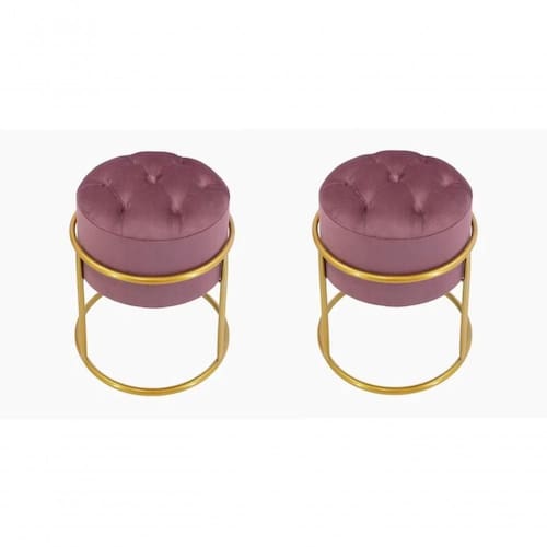 Kit 2 Puff Banqueta Estofado Decorativo Base De Ferro Capitonê Suede Rosê Eli Móveis E Decoração