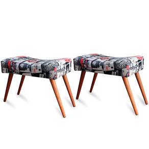 Kit 2 Puff Cama inBox Londres Retangular com Pés em Madeira Maciça Tecido Suede - Branco