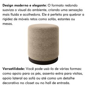 O Puff Redondo Havai é revestido em tecido Bouclé ou Linho, com os pés aparentes no estilo industrial trazendo um toque de modernidade, é o móvel perfeito para valorizar a sua decoração.