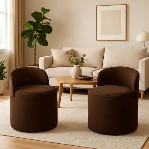 Kit 2 Puff Encosto Suede Redondo Sala Banco Orgânico Quarto Marrom