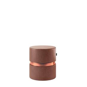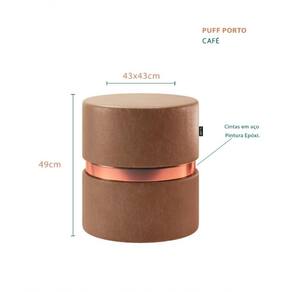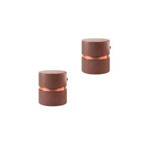 Kit com 2 Bancos Puffes Estofados Decorativos Redondos Miami em Revestimento Sintético na cor Café com Cinta em Aço na cor Cobre - Adz