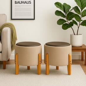 Kit 2 Puff Estrela - Tecido Bouclé com Pés de Madeira - Movelove - Bege