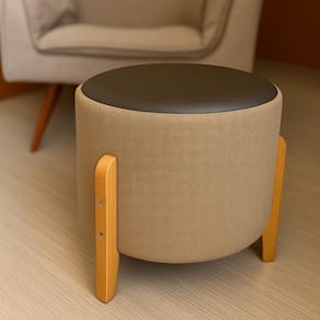 Pés em Madeira Maciça: Envernizados, os pés conferem um visual rústico e robusto, complementando o design do puff.