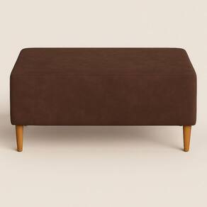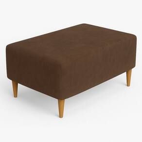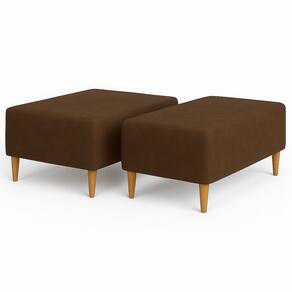 Cada puff é construído com estrutura em madeira de eucalipto reflorestado, assegurando resistência e estabilidade. A espuma D26 de alta densidade proporciona conforto prolongado e firmeza adequada. O suede marrom é resistente, fácil de limpar e agradável ao toque.