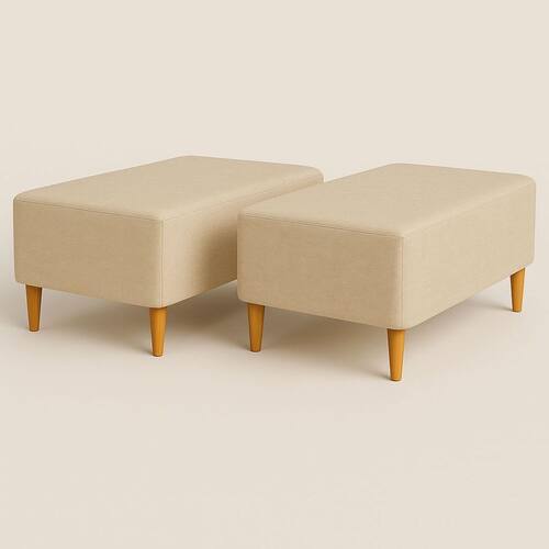 Fabricados com estrutura em madeira de eucalipto reflorestado, os puffes garantem resistência e durabilidade. O assento com espuma D26 proporciona maciez e firmeza, mantendo o conforto mesmo após longos períodos de uso. O linho de alta qualidade é resistente e de fácil manutenção, tornando o conjunto prático e funcional.