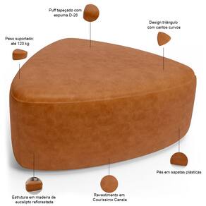 Puff tapeçado com espuma D-26, para maior conforto e durabilidade.