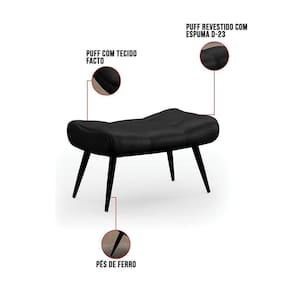 Esse Kit 2 Puffs Decorativos Para Sala de Estar Pés Palito Lord Facto Dunas Preto, da Ibiza é sem dúvidas o que faltava para completar seu ambiente!
