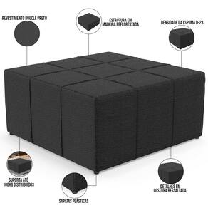 Extremamente confortável, ideal para quem busca por funcionalidade e beleza embutidos num único produto, o Kit 02 Puffs Decorativos Para Sala de Estar Quadrado Milano 90x90cm W01 Bouclê Preto - Lyam Decor é perfeito para seu ambiente e irá superar todas as suas expectativas! É estruturado com espuma macia de alta densidade e revestimento de excelente qualidade, além dos detalhes da costura ressaltada em padrão quadriculado que arrematam muito bem toda a composição deixando-o ainda mais elegante. Possuindo diferentes funções, podendo ser disposto em salas de estar, garantindo assentos extras e apoio para os pés, servindo de suporte ou como mesa de centro, no quarto, em closets, integrando ambientes, dentre outras maneiras visto as infinitas possibilidades. Com certeza harmonizará e agregar ainda mais valor à decoração do seu lar, não perca esta oportunidade. Adquira já o seu!