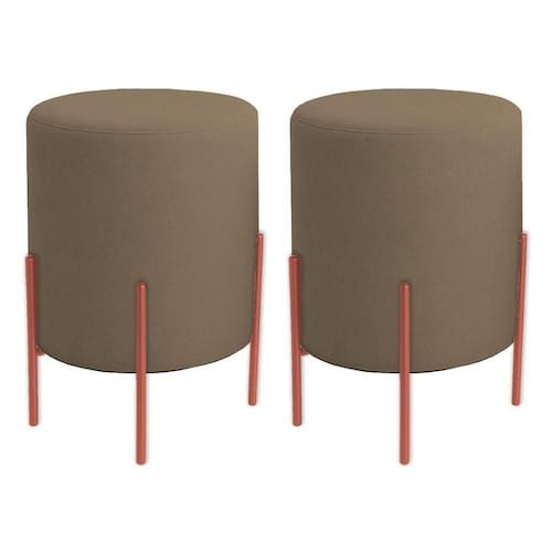 - 2 Puffs Thor Veludo Com Pés De Ferro Rosê