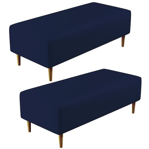Pensando na praticidade do dia-dia, o Kit 02 Puffs Decorativo Sala Bali W01 Pés Palito 120x50cm Couro Sintético Azul Marinho - Lyam Decor se faz perfeito para a sua ambientação!! É extremamente confortável, ideal para quem procura por funcionalidade e beleza embutidos num único produto. Estruturado com espuma macia e de alta densidade e revestimento de excelente qualidade, além de seus belos pés palito que arrematam muito bem toda a composição deixando-o ainda mais elegante.