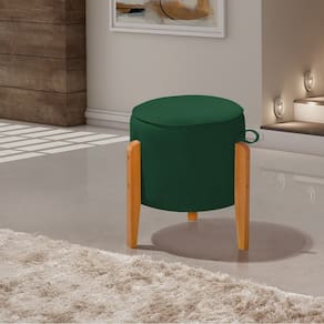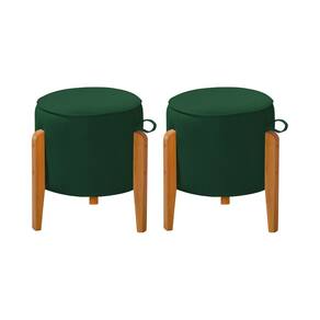 Kit 2 Puffs Redondo Pés em Madeira Maciça Pipa Veludo Verde