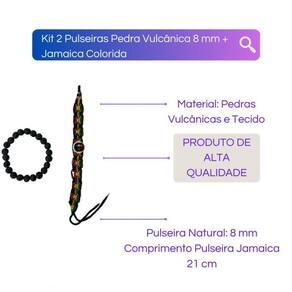 Kit 2 Pulseiras Pedra Vulcânica 8 mm + Jamaica Colorida Kit 2 Pulseiras Pedra Vulcânica 8 mm + Jamaica Colorida
