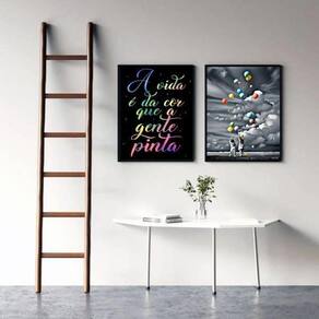 Kit 2 quadros a vida tem a cor que a gente pinta 45x34cm - com vidro