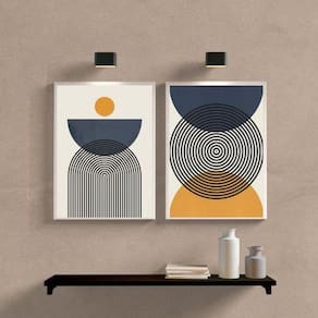 Kit 2 quadros abstrato círculos azul e mostarda 24x18cm - com vidro Moldura: madeira preta Informações do produto tire todas as suas dúvidas no descritivo abaixo: decoração para quarto, sala, cozinha, escritório, área gourmet e muito mais. Chega de paredes vazias medidas - cada peça tem 24x18cm a5 . Material do papel - papel fotográfico brilhante de altíssima resolução acabamento - todos os quadros são acompanhados de vidro para proteção da imagem. - moldura em madeira maciça na cor preta ou branca conforme produto escolhido e pendurador . - os quadros são embalados de forma segura com plástico bolha com camada dupla de acordo com o tamanho dos quadros. Garantia - garantia de 3 meses. Meu quadro chegou. Como posso fixá-lo Você precisa apenas de um martelo e um prego, pois os quadros já vão acompanhados de penduradores. Esta é a forma mais indicada. Como posso limpar meu quadro A limpeza é feita como um móvel comum da sua casa. Apenas um pano seco ou espanador são suficientes para tal Ean: 7898798720230