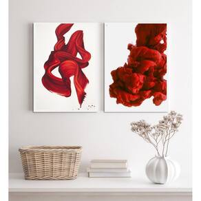 Kit 2 Quadros Abstratos Arte Moderna Ondas Vermelhas 24X18Cm