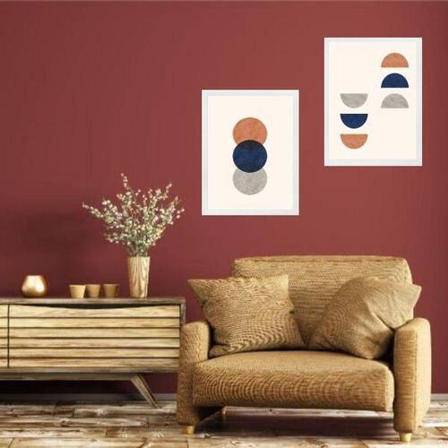 Kit 2 quadros abstratos boho terracota e azul 45x34cm Moldura: madeira branca Informações do produto tire todas as suas dúvidas no descritivo abaixo: decoração para quarto, sala, cozinha, escritório, área gourmet e muito mais. Chega de paredes vazias. Medidas - cada peça tem 45x34cm a3 . Material do papel - papel fotográfico brilhante de altíssima resolução acabamento - todos os quadros são acompanhados de uma película de acetato para proteção da imagem. - os quadros são embalados de forma segura com plástico bolha com camada dupla de acordo com o tamanho dos quadros. Garantia - garantia de 3 meses. Meu quadro chegou. Como posso fixá-lo Você precisa apenas de um martelo e um prego, pois os quadros já vão acompanhados de penduradores. Esta é a forma mais indicada. Caso prefira, você pode utilizar uma fita dupla face neste caso, sugerimos de alta qualidade para evitar que descole e seu quadro caia . Como posso limpar meu quadro A limpeza é feita como um móvel comum da sua casa. Apenas um pano seco ou espanador são suficientes para tal