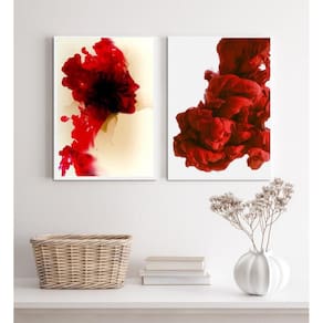 Kit 2 quadros abstratos formas mulher- vermelho 24x18cm
