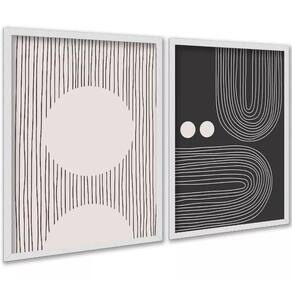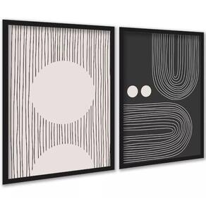 Kit 2 Quadros Abstratos Linhas Preto E Bege Formas 33X24Cm