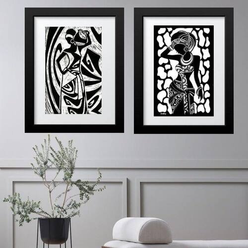 Kit 2 quadros africanas preto e branco - 60x48cm Moldura: madeira preta Informações do produto tire todas as suas dúvidas no descritivo abaixo: decoração para quarto, sala, cozinha, escritório, área gourmet e muito mais. Chega de paredes vazias medidas - cada peça tem 60x48cm . Material do papel - papel fotográfico brilhante de altíssima resolução acabamento - todos os quadros são acompanhados de vidro para proteção da imagem. - moldura em madeira maciça na cor preta ou branca conforme produto escolhido e pendurador. - paspatur branco com 7cm de largura - os quadros são embalados de forma segura com plástico bolha com camada dupla de acordo com o tamanho dos quadros. Garantia - garantia de 3 meses. Meu quadro chegou. Como posso fixá-lo Você precisa apenas de um martelo e um prego, pois os quadros já vão acompanhados de penduradores. Esta é a forma mais indicada. Como posso limpar meu quadro A limpeza é feita como um móvel comum da sua casa. Apenas um pano seco ou espanador são suficientes para tal