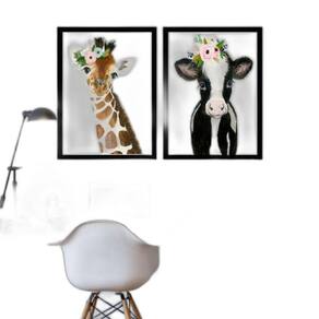Kit 2 quadros animais girafinha e vaquinha 24x18cm Moldura: madeira preta Informações do produto tire todas as suas dúvidas no descritivo abaixo: decoração para quarto, sala, cozinha, escritório, área gourmet e muito mais. Chega de paredes vazias medidas - cada peça tem 24x18cm a5 . Material do papel - papel fotográfico brilhante de altíssima resolução acabamento - todos os quadros são acompanhados de uma película de acetato para proteção da imagem. - moldura em madeira maciça na cor branca e pendurador móvel que pode ser retirado facilmente caso deseje fixar com fita dupla face. - os quadros são embalados de forma segura com plástico bolha com camada dupla de acordo com o tamanho dos quadros. Garantia - garantia de 3 meses prazo de envio pedimos 24 horas úteis no máximo para enviar seu pedido após o envio, segue os prazos normais dos correios, cerca de 7 dias úteis exceto para norte e nordeste, que pode ser de até 14 dias úteis. Em diversas cidades, este prazo normalmente é reduzido, mas depende do prazo dos correios. Meu quadro chegou. Como posso fixá-lo Você precisa apenas de um martelo e um prego, pois os quadros já vão acompanhados de penduradores. Esta é a forma mais indicada. Caso prefira, você pode utilizar uma fita dupla face neste caso, sugerimos de alta qualidade para evitar que descole e seu quadro caia . Como posso limpar meu quadro A limpeza é feita como um móvel comum da sua casa. Apenas um pano seco ou espanador são suficientes para tal