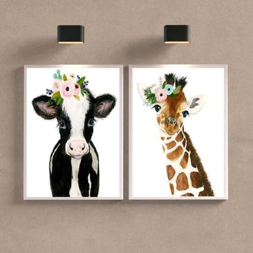 Kit 2 Quadros Animais Girafinha E Vaquinha 24X18Cm Moldura: madeira branca Informações do produto: Tire todas as suas dúvidas no descritivo abaixo: Medidas - cada peça tem 24x18cm a5 . Material do papel - papel fotográfico brilhante de altíssima resolução Acabamento - todos os quadros são acompanhados de uma película de acetato para proteção da imagem. Moldura em madeira maciça na cor branca e dependurador móvel que pode ser retirado facilmente caso deseje fixar com fita dupla face. Os quadros são embalados de forma segura com plástico bolha com camada dupla de acordo com o tamanho dos quadros. - de 3 meses Prazo de envio pedimos 24 horas úteis no máximo para enviar seu pedido após o envio, segue os prazos normais dos correios, cerca de 7 dias úteis exceto para norte e nordeste, que pode ser de até 14 dias úteis. Em diversas cidades, este prazo normalmente é reduzido, mas depende do prazo dos correios. Como posso fixá-lo Você precisa apenas de um martelo e um prego, pois os quadros já vão acompanhados de dependuradores. Esta é a forma mais indicada. Caso prefira, você pode utilizar uma fita dupla face neste caso, sugerimos de alta qualidade para evitar que descole e seu quadro caia . Como posso limpar meu quadro A limpeza é feita como um móvel comum da sua casa. Apenas um pano seco ou espanador são suficientes para tal.