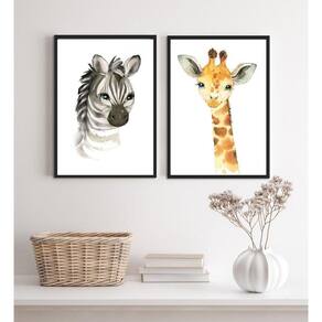 O Kit 2 Quadros Animais Infantis Aquarela 33X24Cm é perfeito para decorar quartos de crianças, salas, cozinhas, escritórios, áreas gourmet e muito mais. Composto por dois quadros encantadores, cada peça possui 33x24cm tamanho A4 e é produzida em papel fotográfico brilhante de altíssima resolução.