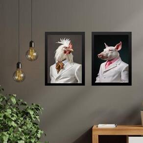 Kit 2 quadros animais - porco e galo elegantes 24x18cm Moldura: madeira preta Informações do produto tire todas as suas dúvidas no descritivo abaixo: decoração para quarto, sala, cozinha, escritório, área gourmet e muito mais. Chega de paredes vazias medidas - cada peça tem 24x18cm a5 . Material do papel - papel fotográfico brilhante de altíssima resolução acabamento - todos os quadros são acompanhados de uma película de acetato para proteção da imagem. - os quadros são embalados de forma segura com plástico bolha com camada dupla de acordo com o tamanho dos quadros. Garantia - garantia de 3 meses. Meu quadro chegou. Como posso fixá-lo Você precisa apenas de um martelo e um prego, pois os quadros já vão acompanhados de penduradores. Esta é a forma mais indicada. Caso prefira, você pode utilizar uma fita dupla face neste caso, sugerimos de alta qualidade para evitar que descole e seu quadro caia . Como posso limpar meu quadro A limpeza é feita como um móvel comum da sua casa. Apenas um pano seco ou espanador são suficientes para tal