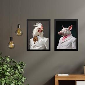 Kit 2 quadros animais - porco e galo elegantes 45x34cm Moldura: madeira preta Informações do produto tire todas as suas dúvidas no descritivo abaixo: decoração para quarto, sala, cozinha, escritório, área gourmet e muito mais. Chega de paredes vazias. Medidas - cada peça tem 45x34cm a3 . Material do papel - papel fotográfico brilhante de altíssima resolução acabamento - todos os quadros são acompanhados de uma película de acetato para proteção da imagem. - os quadros são embalados de forma segura com plástico bolha com camada dupla de acordo com o tamanho dos quadros. - de 3 meses. Meu quadro chegou. Como posso fixá-lo Você precisa apenas de um martelo e um prego, pois os quadros já vão acompanhados de penduradores. Esta é a forma mais indicada. Caso prefira, você pode utilizar uma fita dupla face neste caso, sugerimos de alta qualidade para evitar que descole e seu quadro caia . Como posso limpar meu quadro A limpeza é feita como um móvel comum da sua casa. Apenas um pano seco ou espanador são suficientes para tal Marca: Não Informado