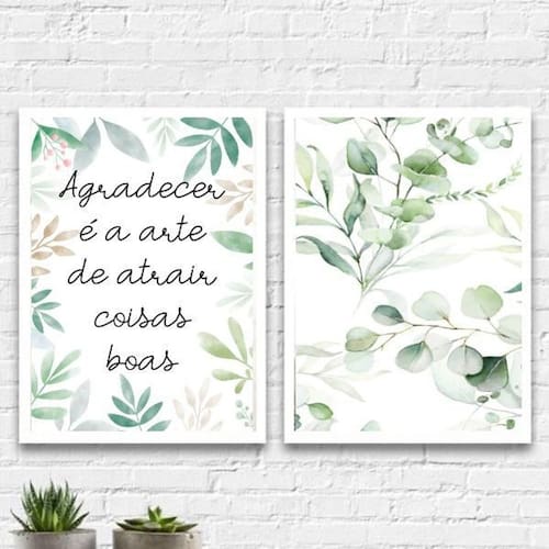 Kit 2 Quadros Aquarela Agradecer 33X24Cm Com Vidro - Branca