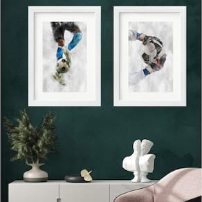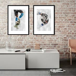 Kit 2 quadros aquarela futebol - 60x48cm Moldura: madeira preta Informações do produto tire todas as suas dúvidas no descritivo abaixo: decoração para quarto, sala, cozinha, escritório, área gourmet e muito mais. Chega de paredes vazias medidas - cada peça tem 60x48cm . Material do papel - papel fotográfico brilhante de altíssima resolução acabamento - todos os quadros são acompanhados de vidro para proteção da imagem. - moldura em madeira maciça na cor preta ou branca conforme produto escolhido e pendurador. - paspatur branco com 7cm de largura - os quadros são embalados de forma segura com plástico bolha com camada dupla de acordo com o tamanho dos quadros. Garantia - garantia de 3 meses. Meu quadro chegou. Como posso fixá-lo Você precisa apenas de um martelo e um prego, pois os quadros já vão acompanhados de penduradores. Esta é a forma mais indicada. Como posso limpar meu quadro A limpeza é feita como um móvel comum da sua casa. Apenas um pano seco ou espanador são suficientes para tal