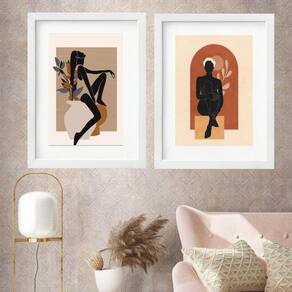 Kit 2 quadros arte boho mulheres - 60x48cm Moldura: madeira preta Informações do produto tire todas as suas dúvidas no descritivo abaixo: decoração para quarto, sala, cozinha, escritório, área gourmet e muito mais. Chega de paredes vazias medidas - cada peça tem 60x48cm . Material do papel - papel fotográfico brilhante de altíssima resolução acabamento - todos os quadros são acompanhados de vidro para proteção da imagem. - moldura em madeira maciça na cor preta ou branca conforme produto escolhido e pendurador. - paspatur branco com 7cm de largura - os quadros são embalados de forma segura com plástico bolha com camada dupla de acordo com o tamanho dos quadros. Garantia - garantia de 3 meses. Meu quadro chegou. Como posso fixá-lo Você precisa apenas de um martelo e um prego, pois os quadros já vão acompanhados de penduradores. Esta é a forma mais indicada. Como posso limpar meu quadro A limpeza é feita como um móvel comum da sua casa. Apenas um pano seco ou espanador são suficientes para tal Ean: 7893322242103