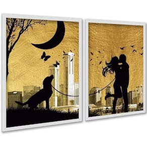 Kit 2 quadros arte casal com cachorro 33x24cm Cor: moldura preta Informações do produto tire todas as suas dúvidas no descritivo abaixo: decoração para quarto, sala, cozinha, escritório, área gourmet e muito mais. Chega de paredes vazias medidas - cada peça tem 33x24cm a4 . Material do papel - papel fotográfico brilhante de altíssima resolução acabamento - todos os quadros são acompanhados de uma película de acetato para proteção da imagem. - os quadros são embalados de forma segura com plástico bolha com camada dupla de acordo com o tamanho dos quadros. - de 3 meses. Meu quadro chegou. Como posso fixá-lo Você precisa apenas de um martelo e um prego, pois os quadros já vão acompanhados de penduradores. Esta é a forma mais indicada. Caso prefira, você pode utilizar uma fita dupla face neste caso, sugerimos de alta qualidade para evitar que descole e seu quadro caia . Como posso limpar meu quadro A limpeza é feita como um móvel comum da sua casa. Apenas um pano seco ou espanador são suficientes para tal